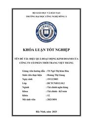 Hiệu quả hoạt động kinh doanh của Công ty Cổ phần Thời trang Việt Thắng : Khoá luận tốt nghiệp / Hoàng Thị Giang