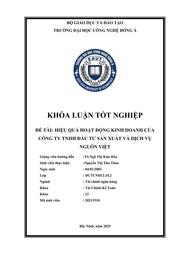 Hiệu quả hoạt động kinh doanh của Công ty TNHH Đầu tư Sản xuất và Dịch vụ Nguồn Việt : Khoá luận tốt nghiệp / Nguyễn Thị Thu Thảo