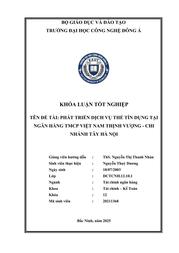 Phát triển dịch vụ thẻ tín dụng tại Ngân hàng TMCP Việt Nam Thịnh Vượng - Chi nhánh Tây Hà Nội : Khoá luận tốt nghiệp / Nguyễn Thùy Dương